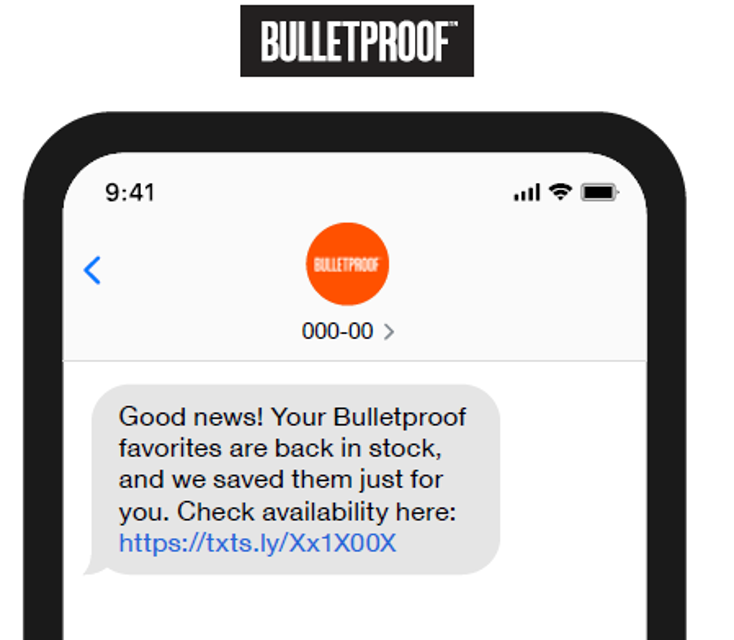 For example, health brand Bulletproof sends their customers a text message to let them know when items they viewed come back in stock.