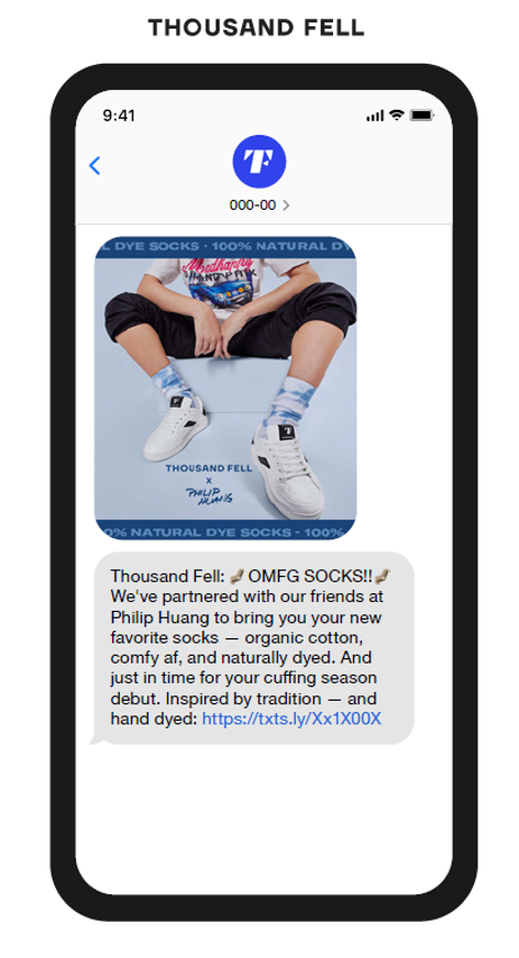 NYC-based sneakers brand Thousand Fell turned to text message marketing to let customers know about their new collaboration.