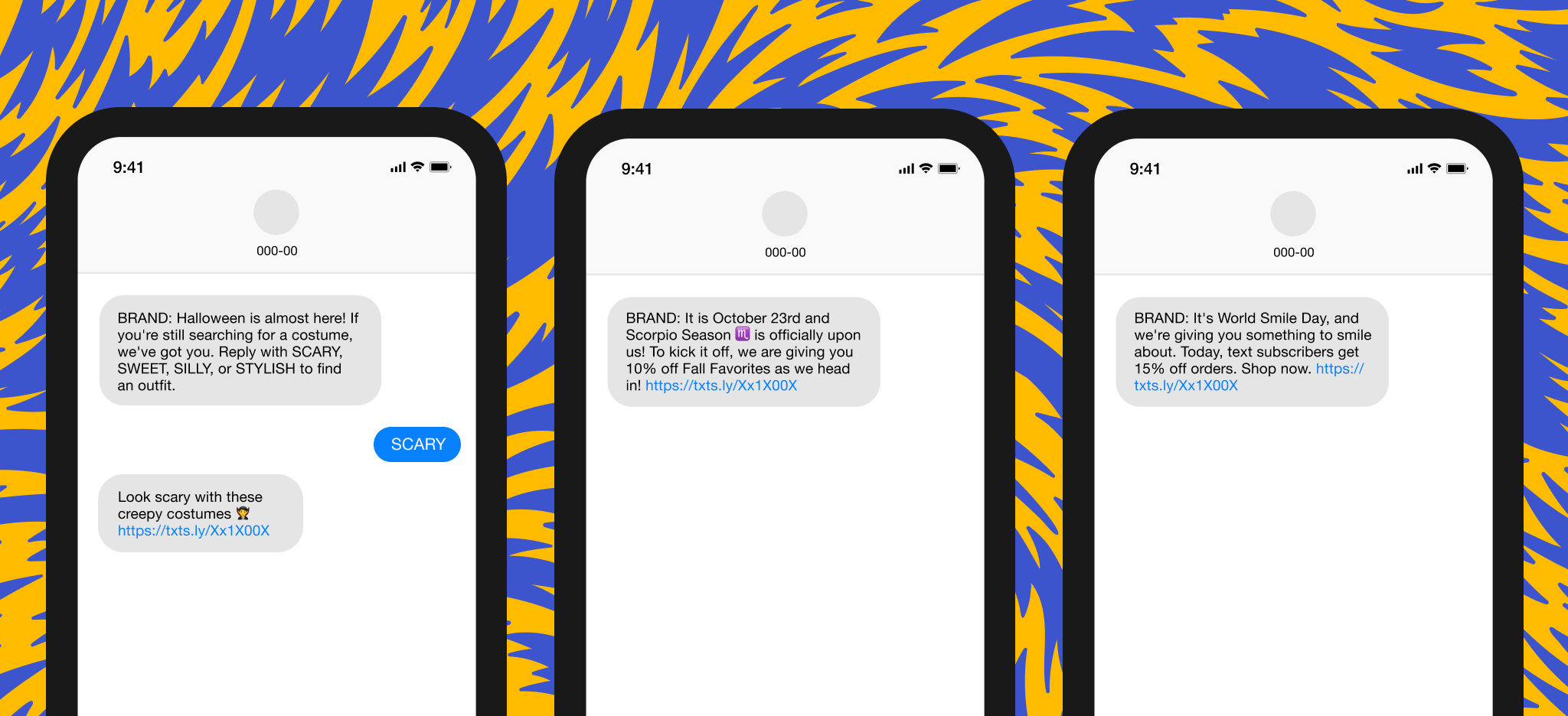 - Get your subscribers in the Halloween spirit with on-demand texts such as: